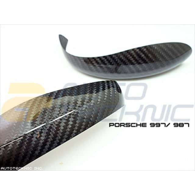AutoTecknic dry carbon fiber mirror covers for the Porsche 997/ 987 - Turbo, Carrera, Boxter and Cayman-S. These 6K twill weave dry carbon fiber mirror covers have the ultra-thin thickness of 0.5mm in which only dry carbon can achieve. With special epoxy resin same as the F1 racing technology, it will not change color under the rain or sun. The mirror covers will fit onto your OEM mirrors like a glove. These mirror covers are perfect for those who want to keep the existing electric mirror adjustment while having a performance look to the exterior of the vehicle. Package will also include the ultra thin 3M automotive adhesive tape and detailed installation instructions. Installation time will take no longer than 20 min. Item number 80044 Manufacturer AutoTecknic Weight 2.0 lbs