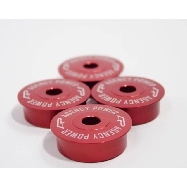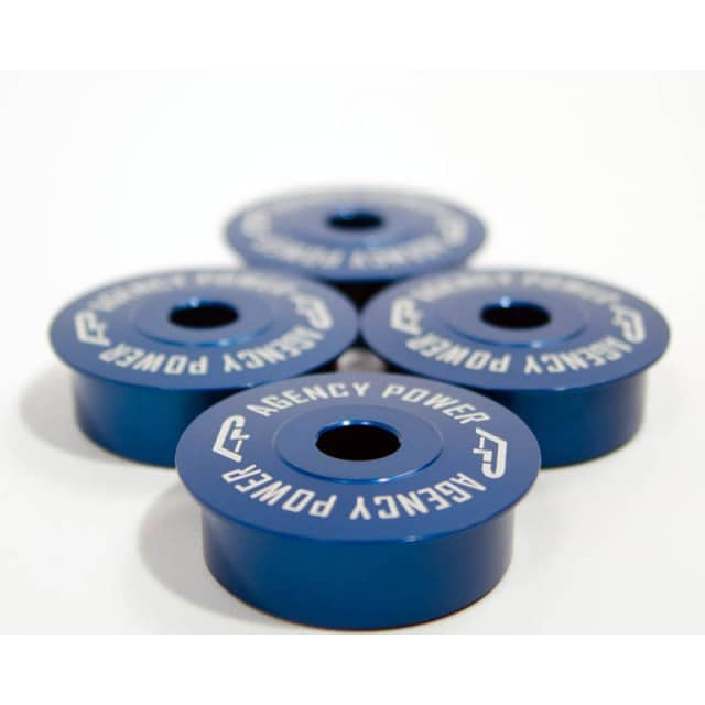 Agency Power has developed the replacement thrust arm bushings to improve the handling characteristics of the Porsche 996 and 997 cars. These non-adjustable thrust arm bushings eliminate the unwanted caster changes while the car is under acceleration and braking.