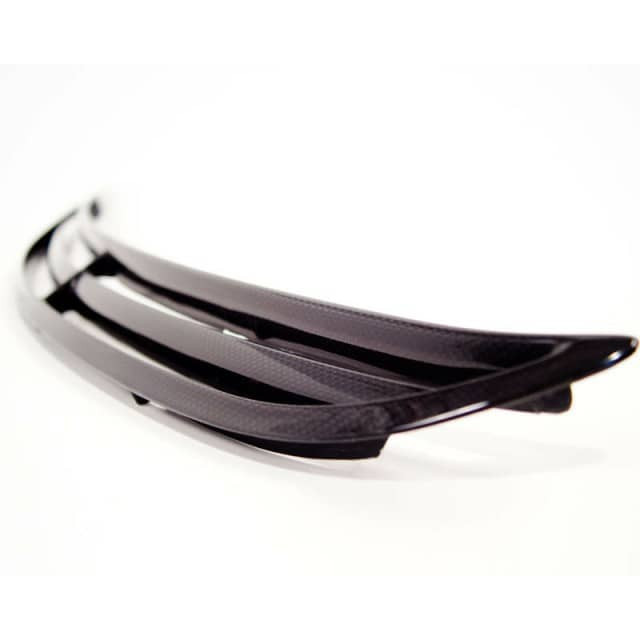 As seen on the GT3 and GT2, the hood grill located between the front bumper and hood actually has a purpose. This part acts like an air vent and helps pull more airflow across the front center radiator keeping the engine temps down. By its shape, it is aerodynamic with the air flow over the vehicle. With out an air vent, air becomes turbulent in that center of the bumper. Agency Power has released their own carbon fiber version. This part is the same as an OEM unit which can replace the factory one on a GT2 or GT3. It can also be used on other aero kits from companies like TechArt, Vorsteiner, and more. Some customers have even modified the OEM bumper to include this piece. It simply pops in place and can be secured with double sided tap or RTV. It is a high gloss carbon fiber 2x2 weave done via a prepreg process. The quality and finish of this carbon fiber is truly amazing.